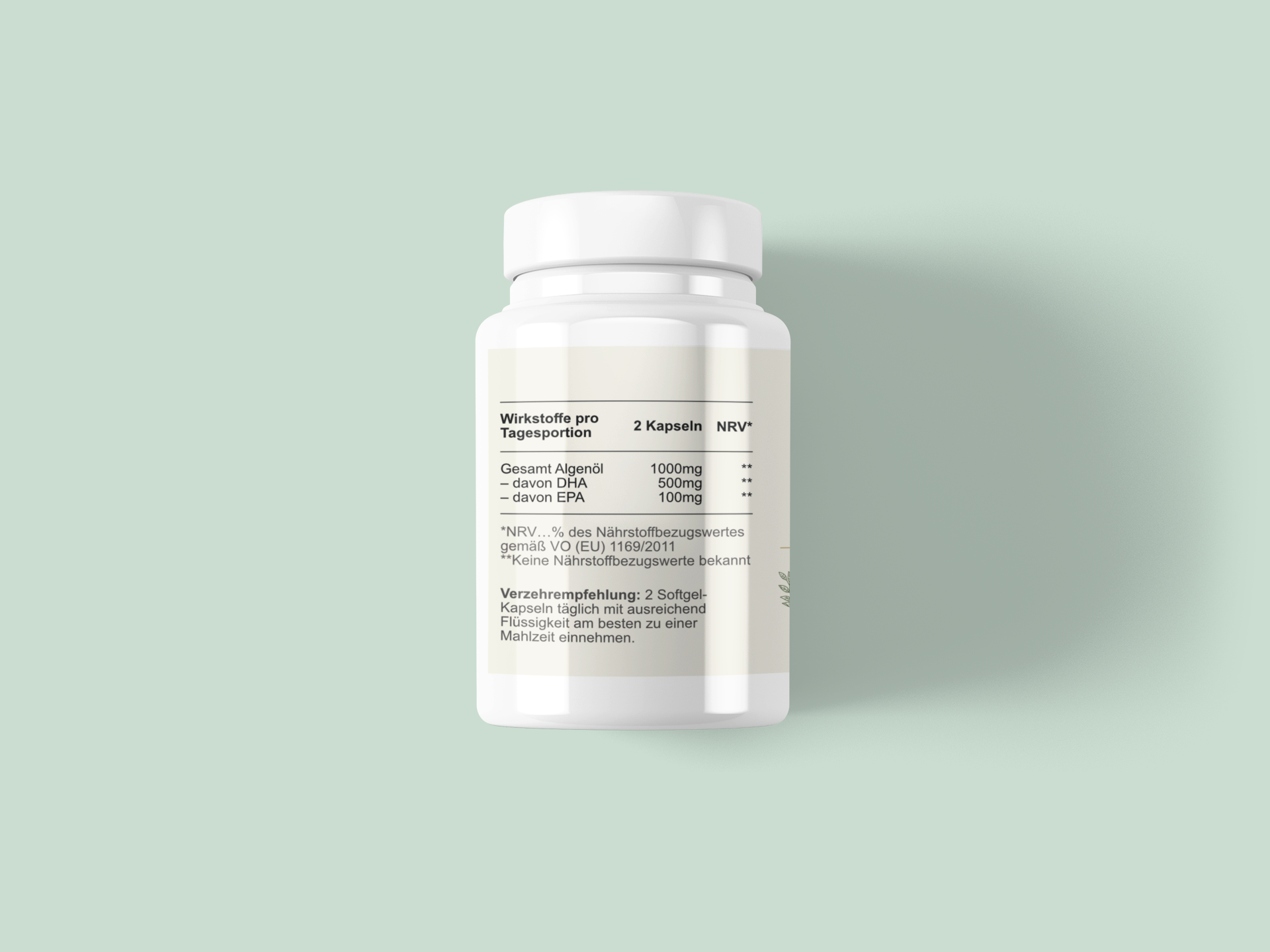1000 mg Algenöl pro Tagesdosis mit 500 mg DHA & 100 mg EPA · - ⚡ Vitamin B-Komplex – Energie & Nerven